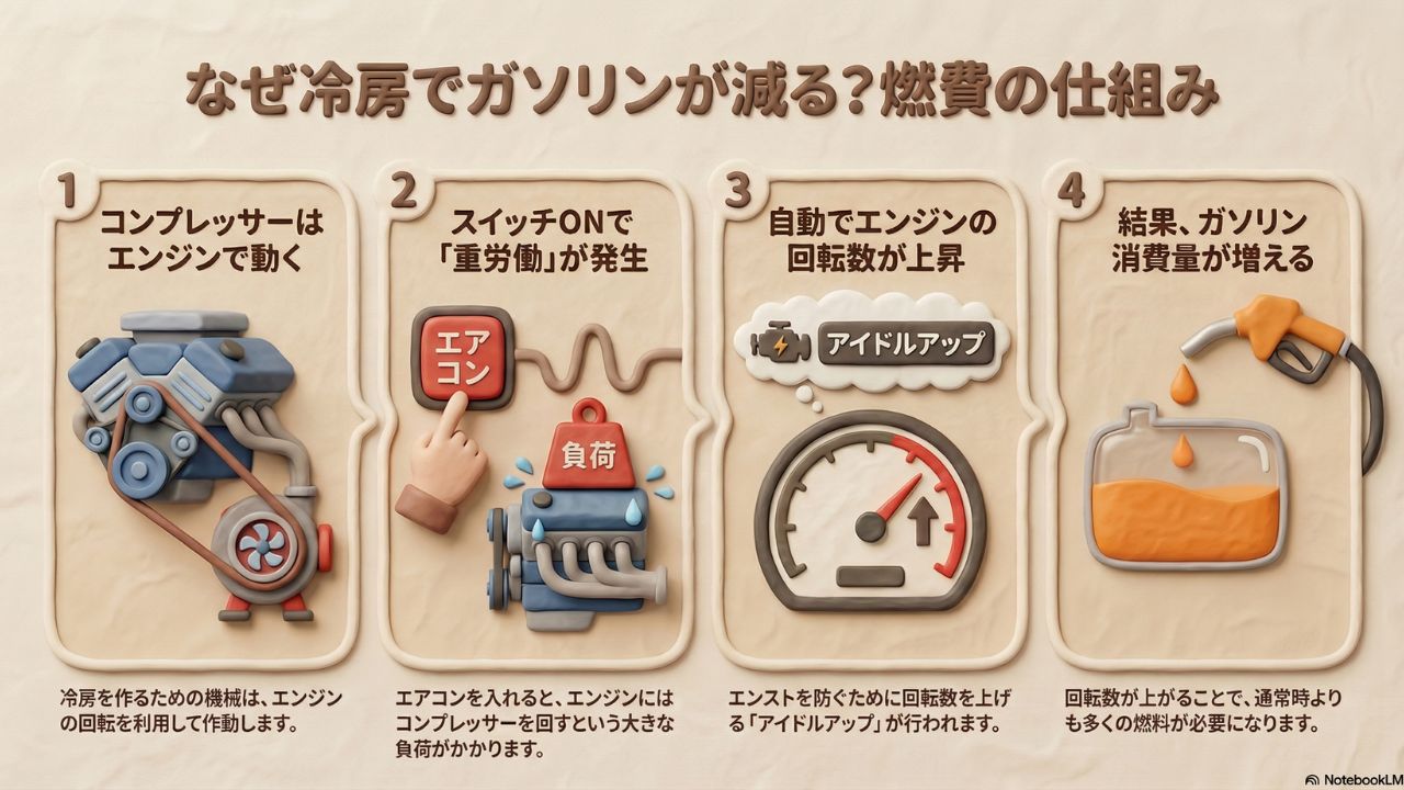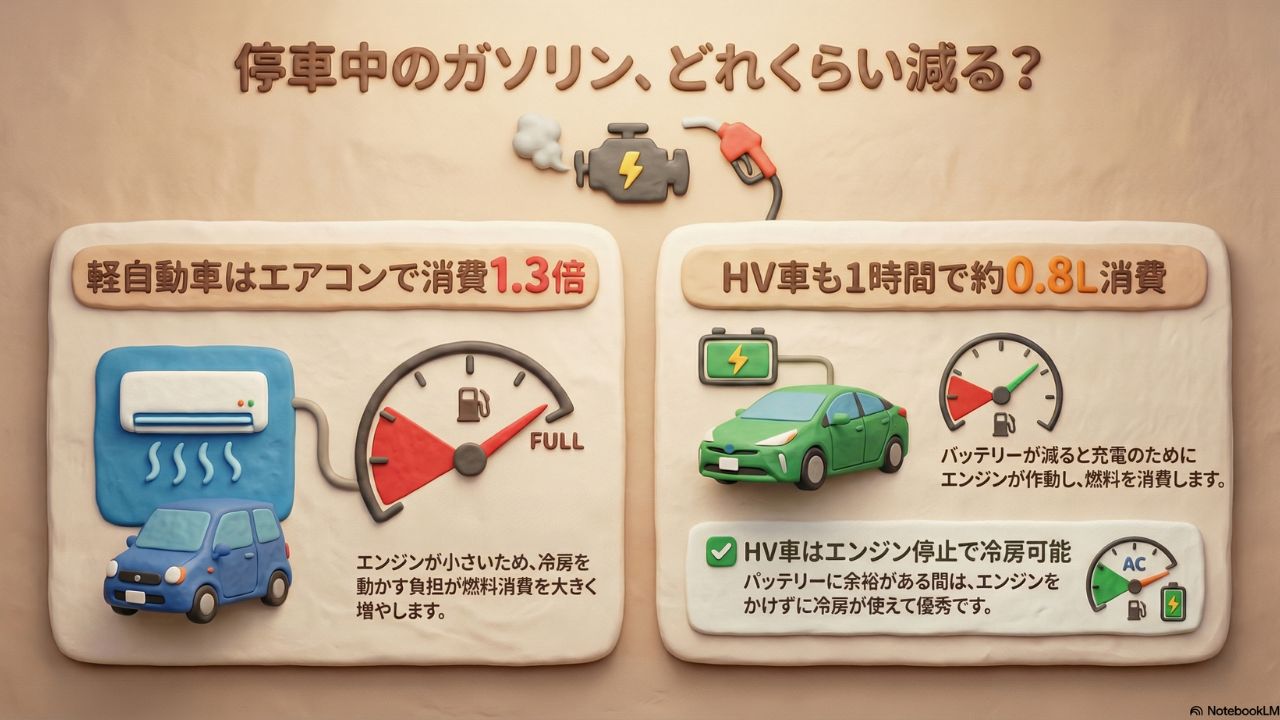 なぜ車を停車させてエアコンを使うだけでガソリンが減るのか