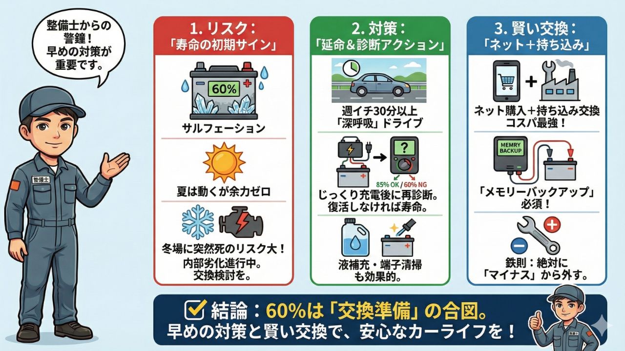 まとめ:車のバッテリー 60パーセントは「安心」ではない
