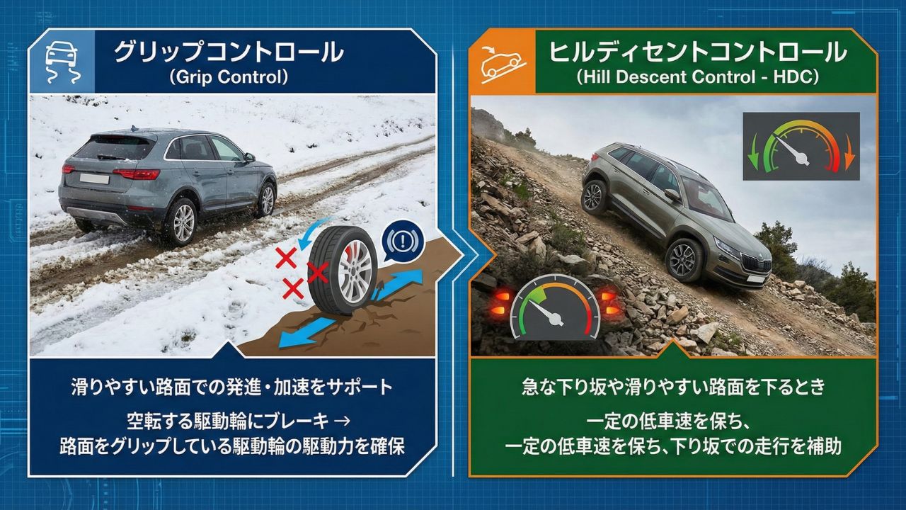 3. 悪路で威力を発揮する「グリップコントロール」と「ヒルディセントコントロール」