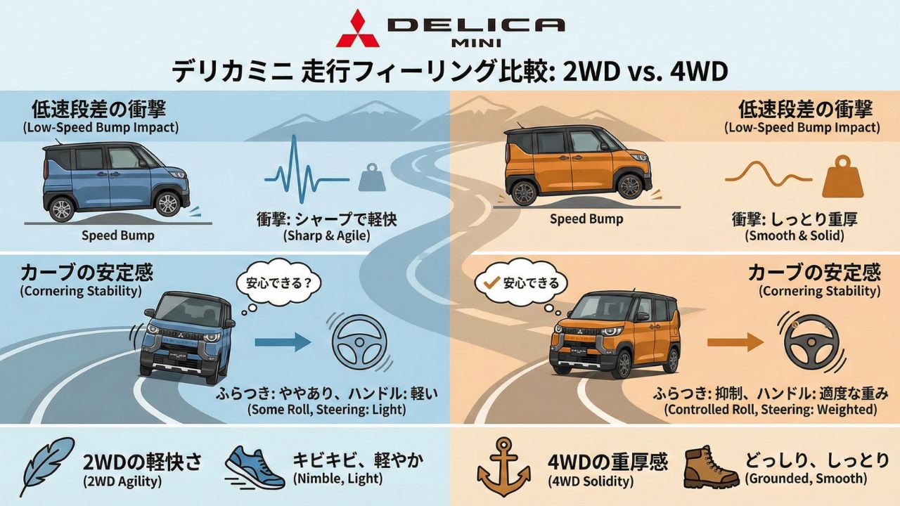 2. 2. デリカミニ4WDと2WDの決定的な違い|専用サスペンションとタイヤの秘密