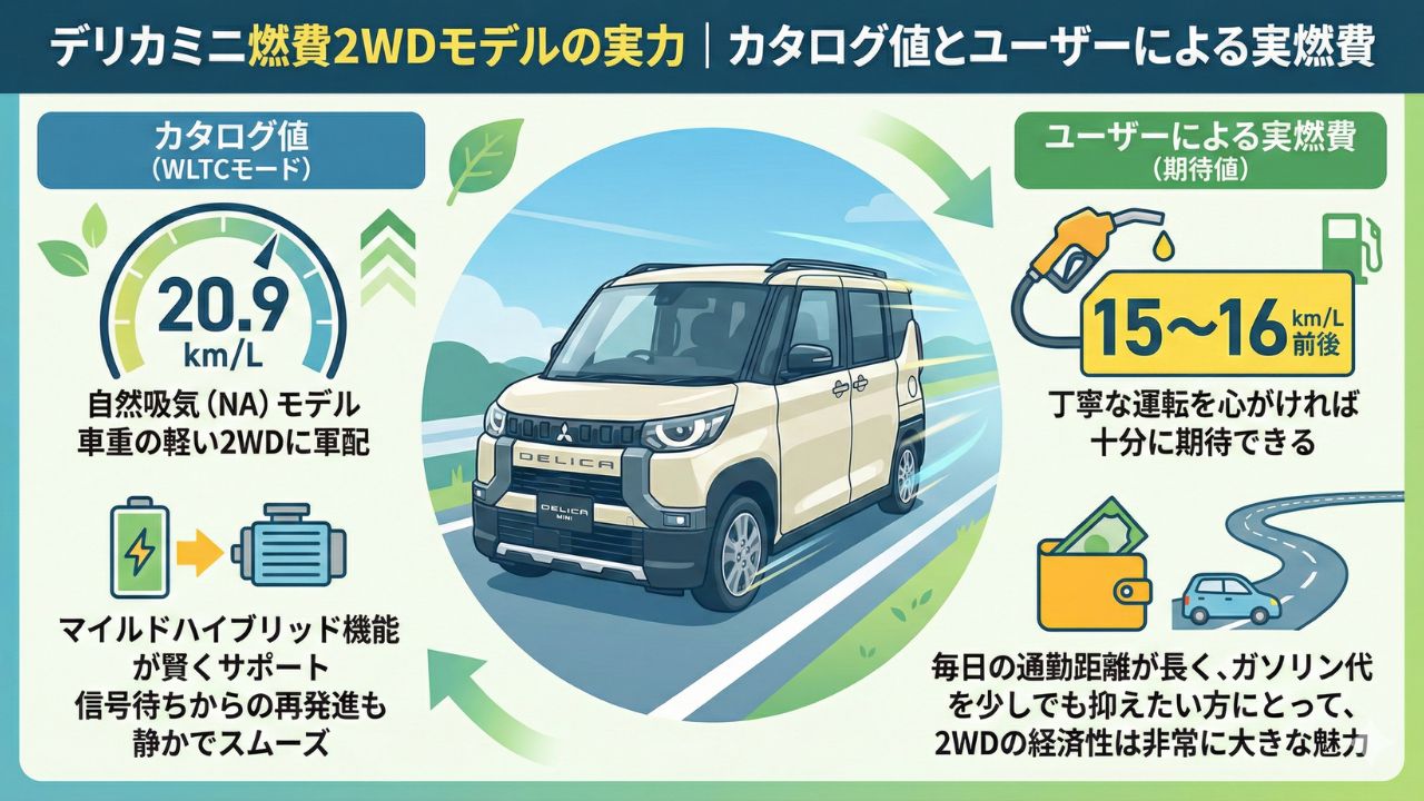 1. デリカミニ燃費2WDモデルの実力|カタログ値とユーザーによる実燃費