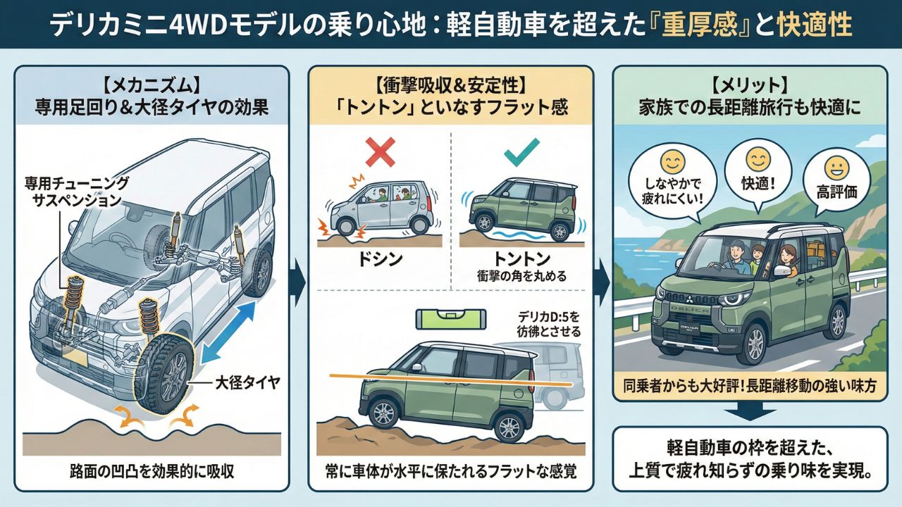 2. 4WD専用チューニングがもたらす「デリカらしい」フラットな乗り心地