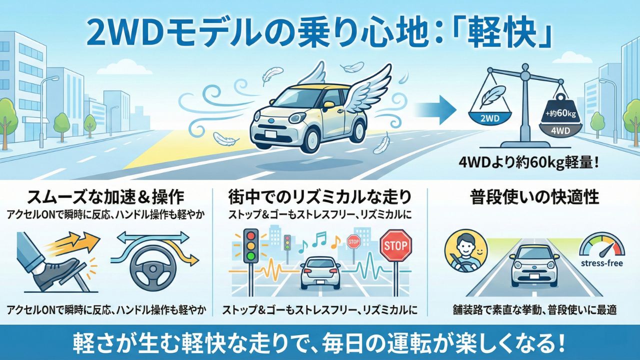 もしあなたが「この見た目が大好きで、主に街中をおしゃれに走りたい」と考えているなら、2WDモデルが非常に魅力的な選択肢になります。