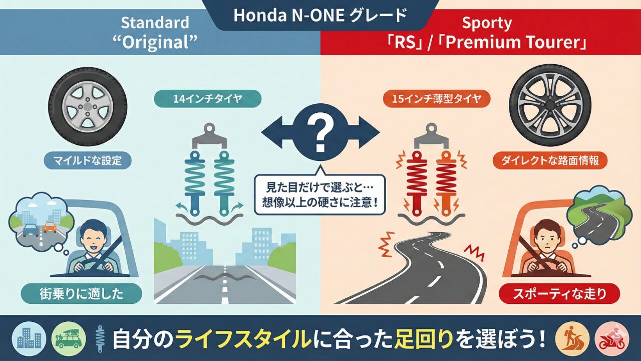 N-ONEを選ぶ際に気をつけたいのが、グレードによる乗り心地の違いです。