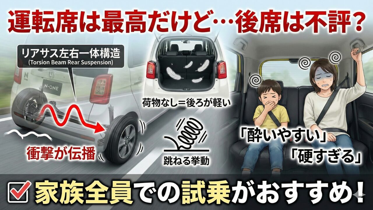 - N-ONEの後部座席は乗り心地が硬めで突き上げが強い?