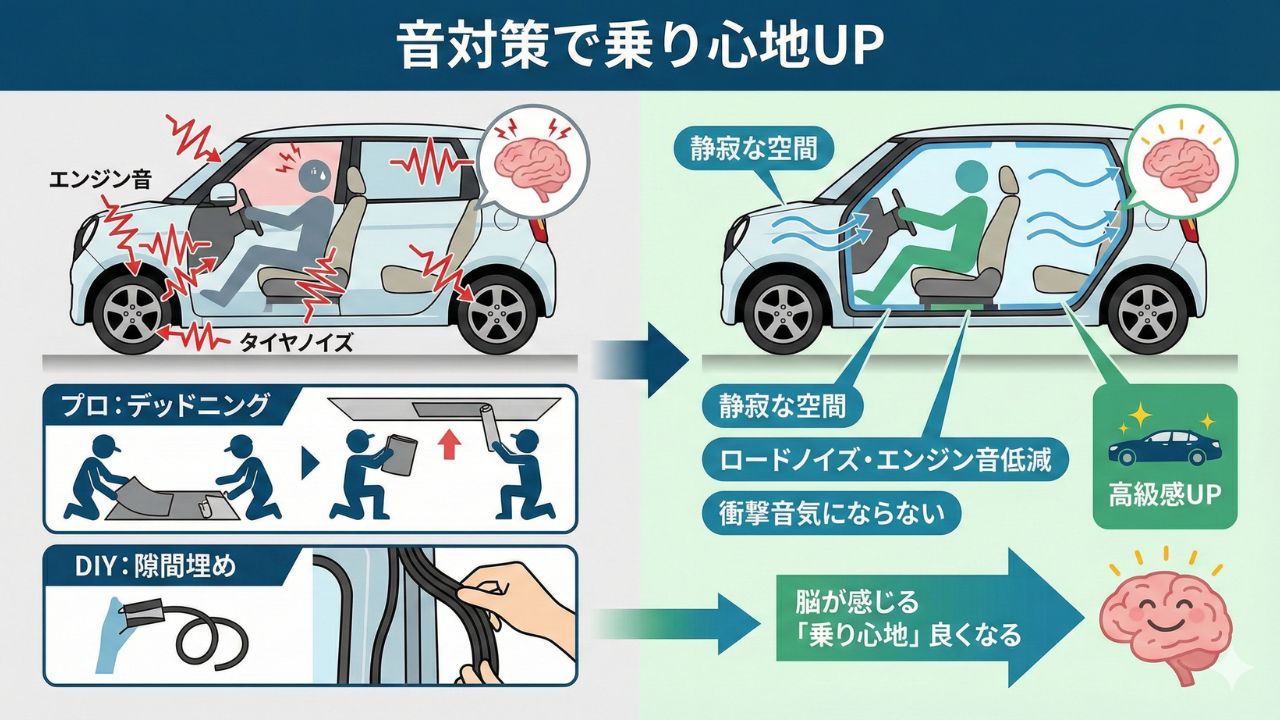 「音」の対策をすると、不思議なことに脳が感じる「乗り心地」も良くなります。