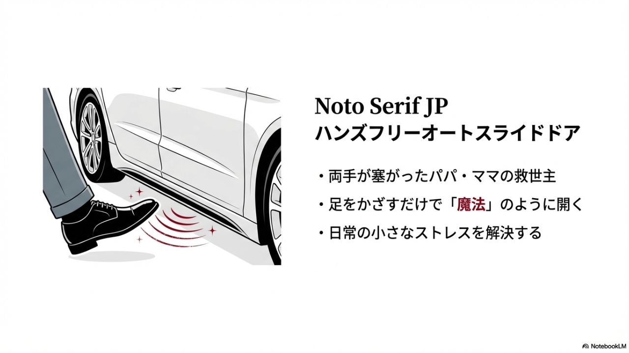 4. ハンズフリーオートスライドドアは子育て世代にとって最高の武器