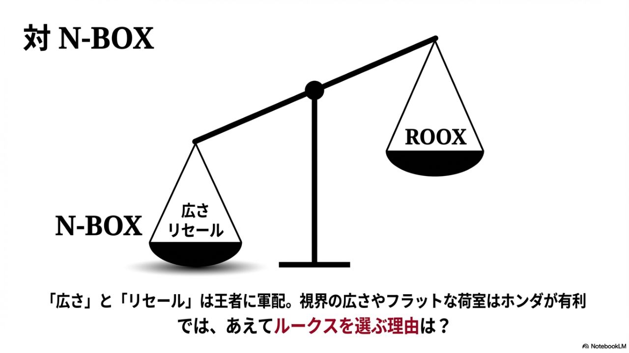 • ライバル車(N-BOXなど)と比較した際の具体的な強み・弱みがわかる
