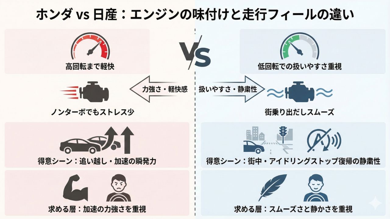 3. 燃費とパワーのバランス:ホンダと日産のエンジン特性の違い
