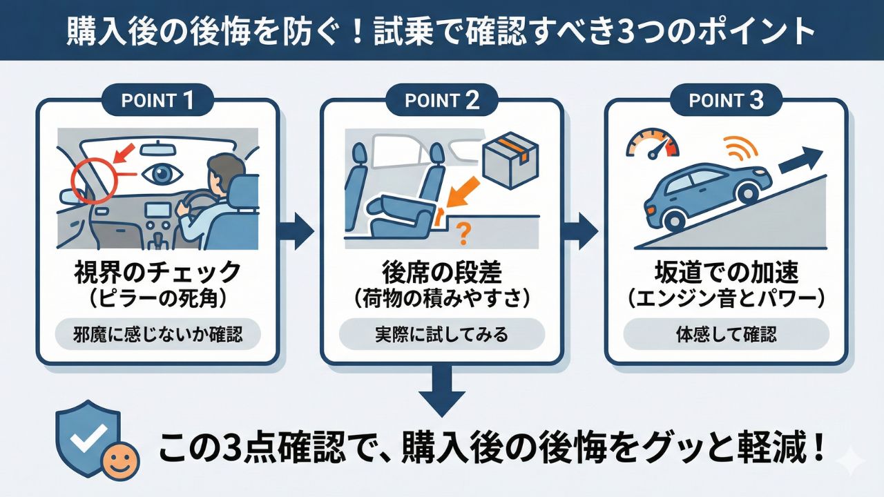• 購入前に必ずチェック!ディーラー試乗で確認すべき3つのポイント