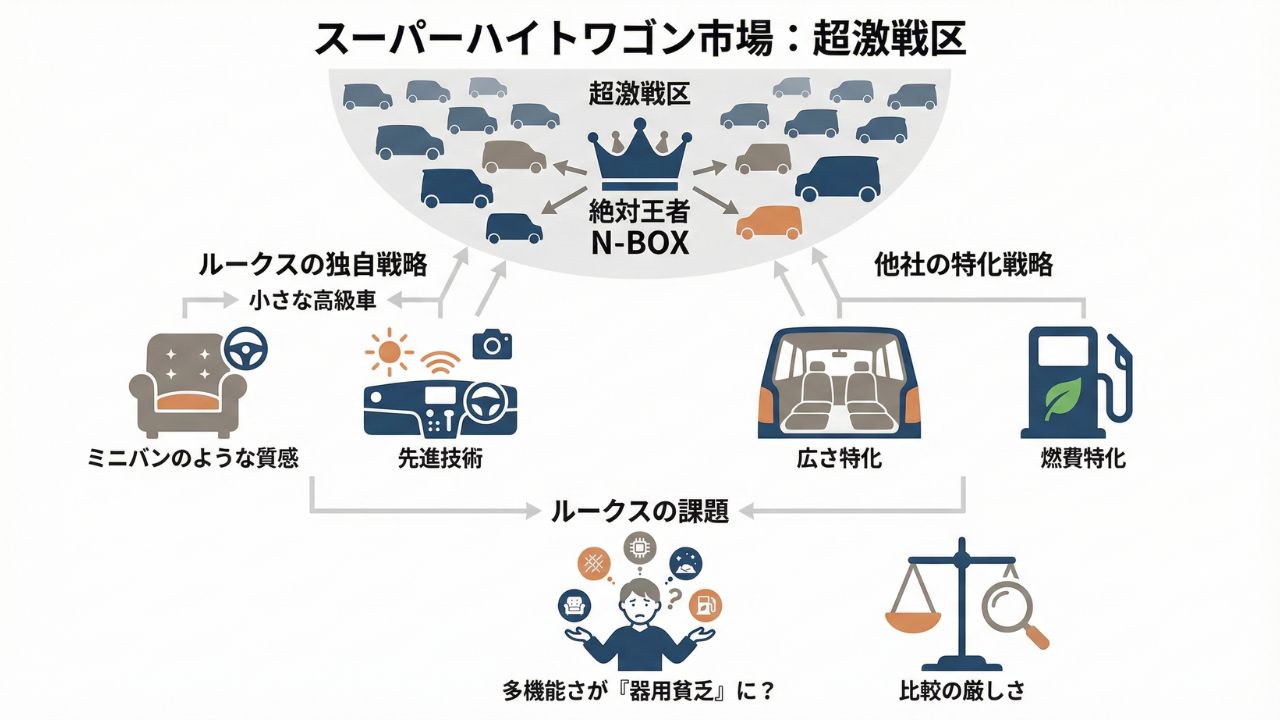 2. 競争激しいスーパーハイトワゴン市場でのルークスの立ち位置