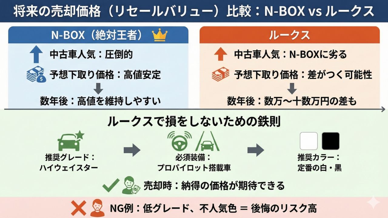 • N-BOXと比較すると、リセールバリューや積載性で不利になるケースが多い