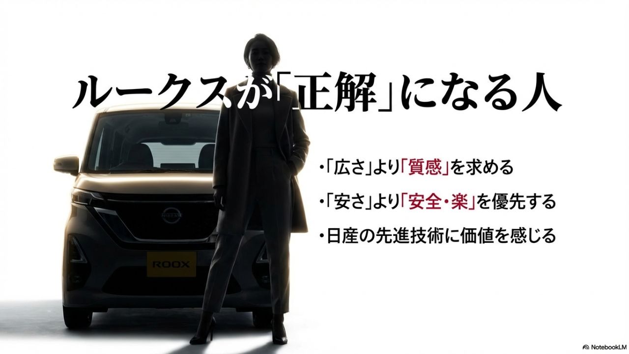 「技術の日産」が提供する先進の機能に価値を感じるなら、ネットの辛口な評価を気にする必要はありません。あなたにとっての「正解」は、ルークスにあるはずですよ。