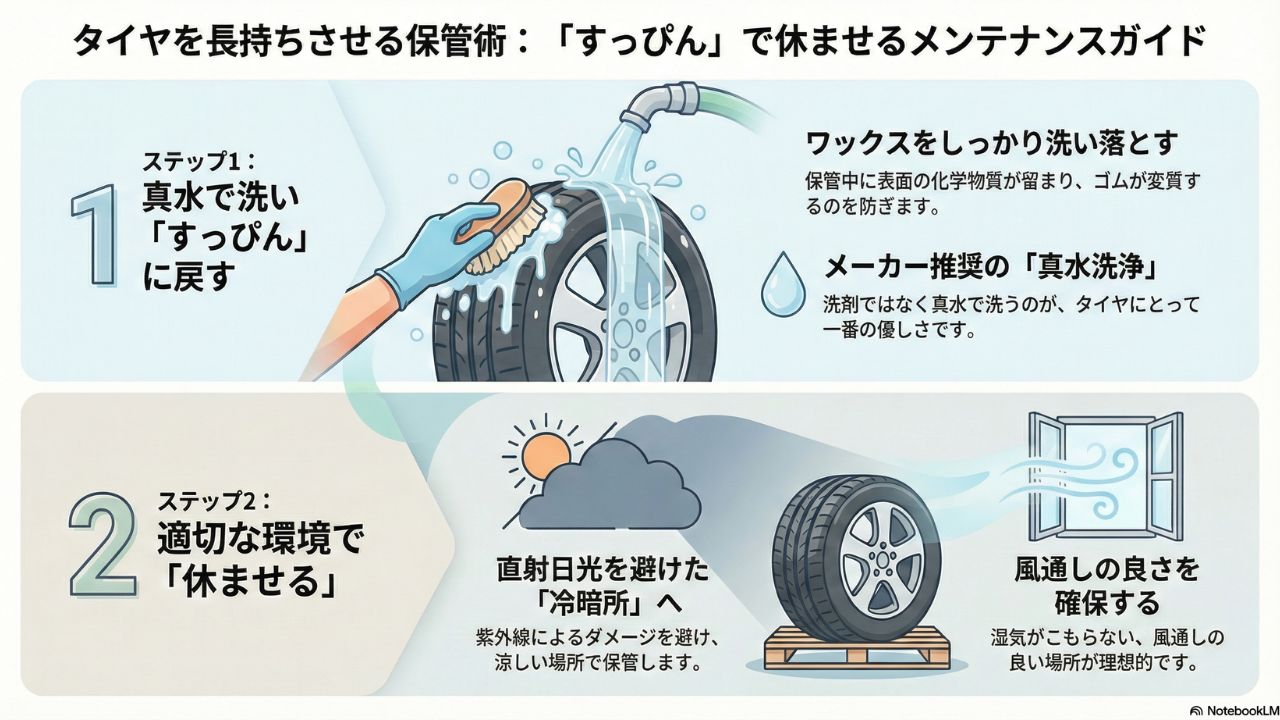 - タイヤ保管前にはワックスを洗い落とすべき理由