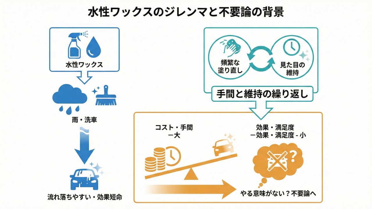 理由3:水性ワックスはすぐ落ちる?手間と効果のコスパ問題