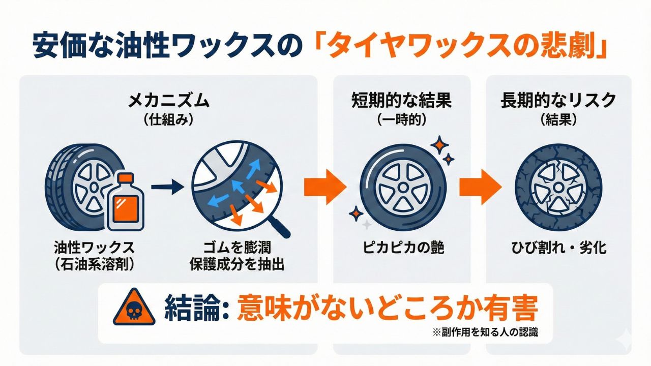 理由2:油性ワックスが招く「タイヤワックスの悲劇」への不安